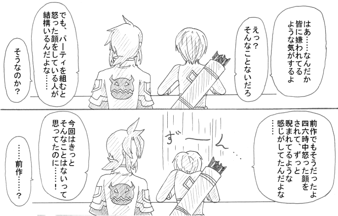 その後2人を一緒のパーティに入れたら起こったフェイスチャット(「近親憎悪?」でしたっけ?)を見たら、